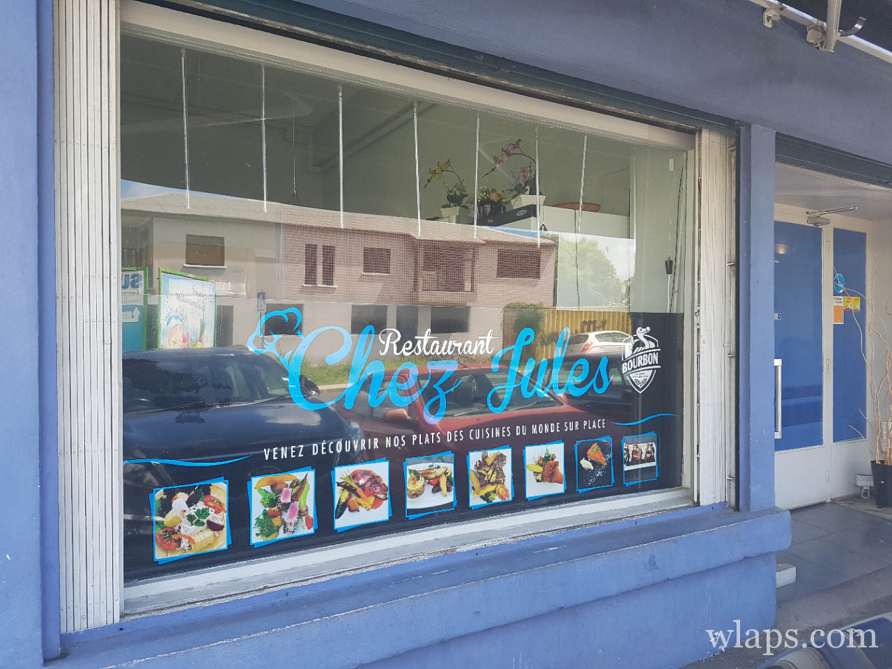 Il est midi, nous passons à côté de Saint André et nous ne savons pas où aller déjeuner. Je sors mon guide du Routard, puis je regarde sur TripAdvisor et je tranche. Direction le restaurant « Chez Jules », c’est à 5 minutes de voiture de là. Je trouve une place tant bien que mal le long de la route et nous entrons.