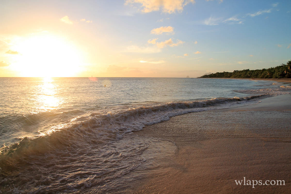 - La plage du Diamant : avec le rocher du Diamant en toile de fond, cette plage est vraiment le lieu le plus romantique pour un coucher de soleil en Martinique. Difficile de trouver le meilleur angle de vue pour prendre les photos tant c’est beau.