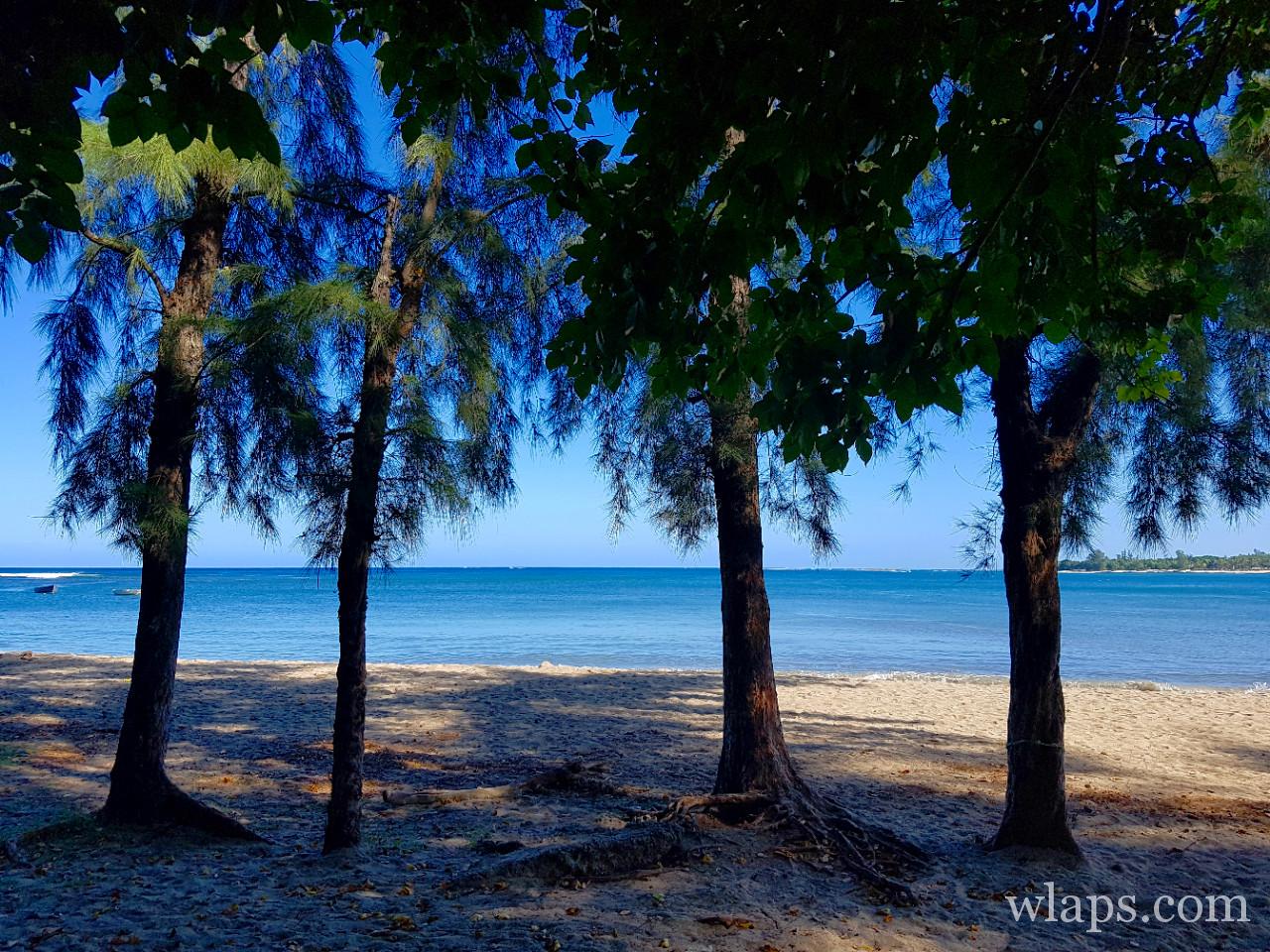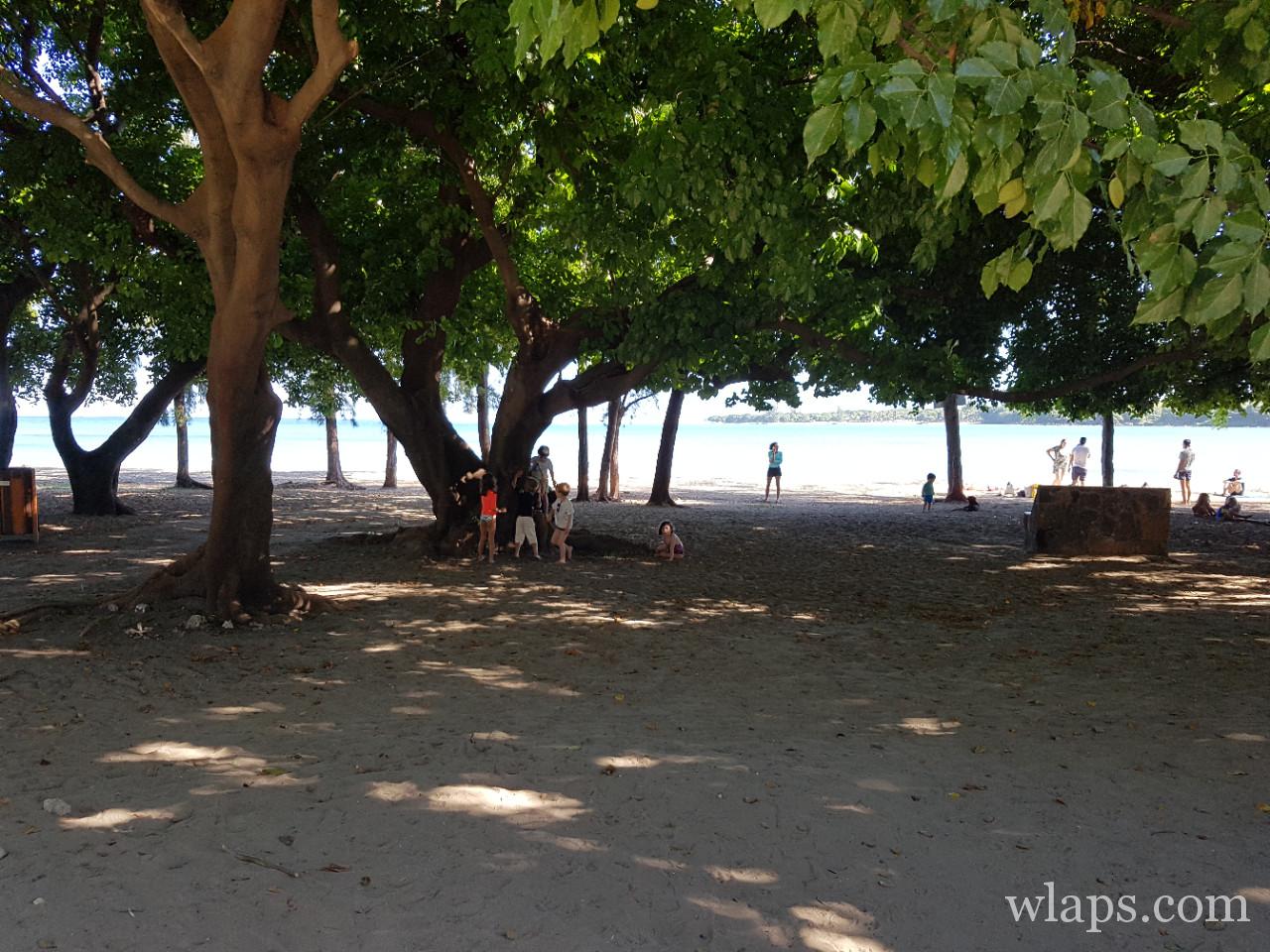Il y a des arbres qui longent la plage, et les locaux aiment y déjeuner sur les quelques bancs disposés. Juste derrière la plage se trouvent de nombreuses places de parking.