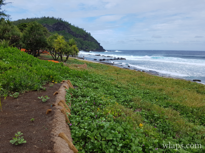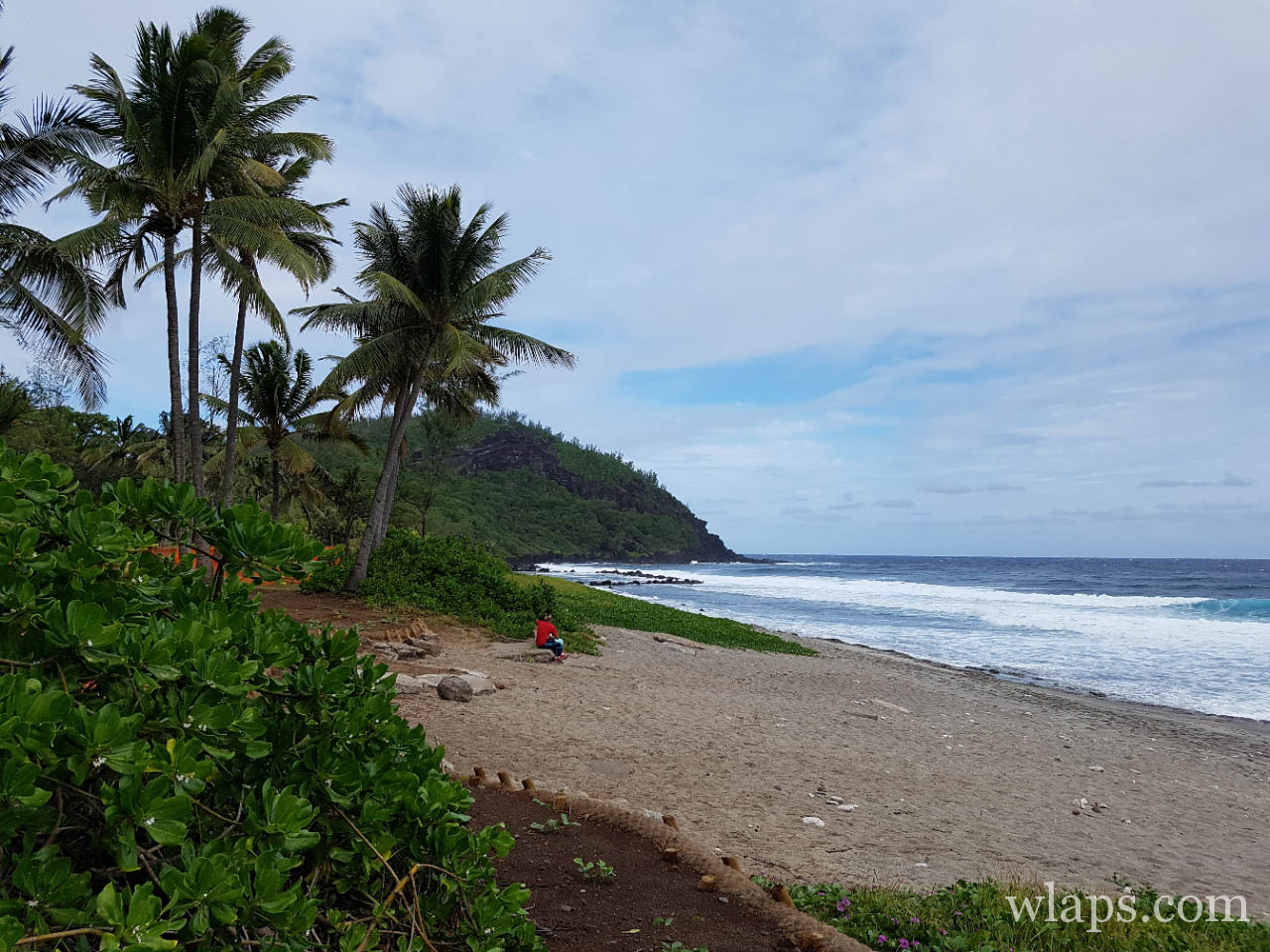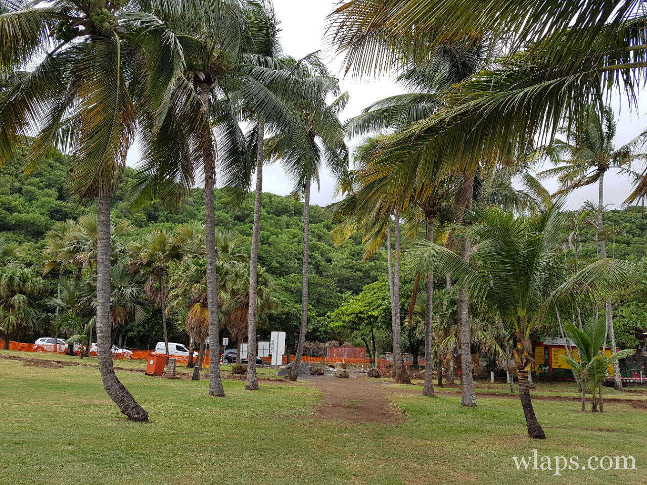 Il y a un grand parking juste derrière la plage. Et de nombreux cocotiers et vacoas pour apporter de l’ombre les jours où c’est nécessaire.