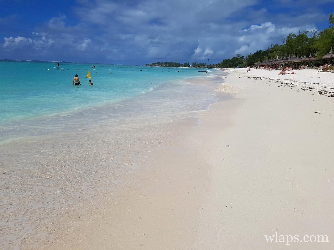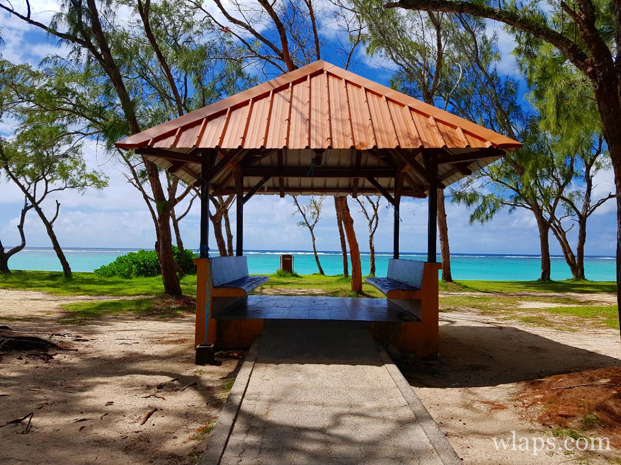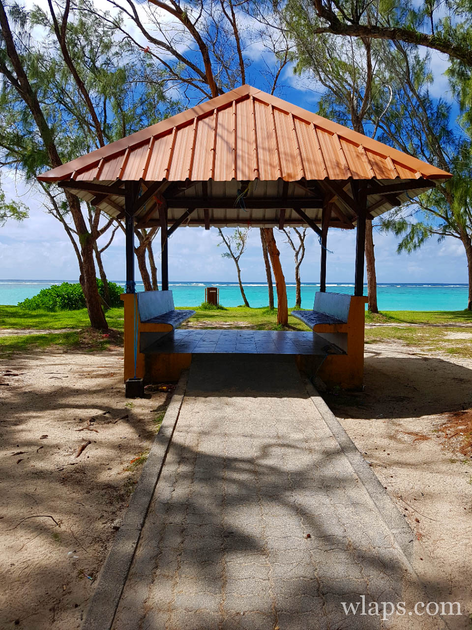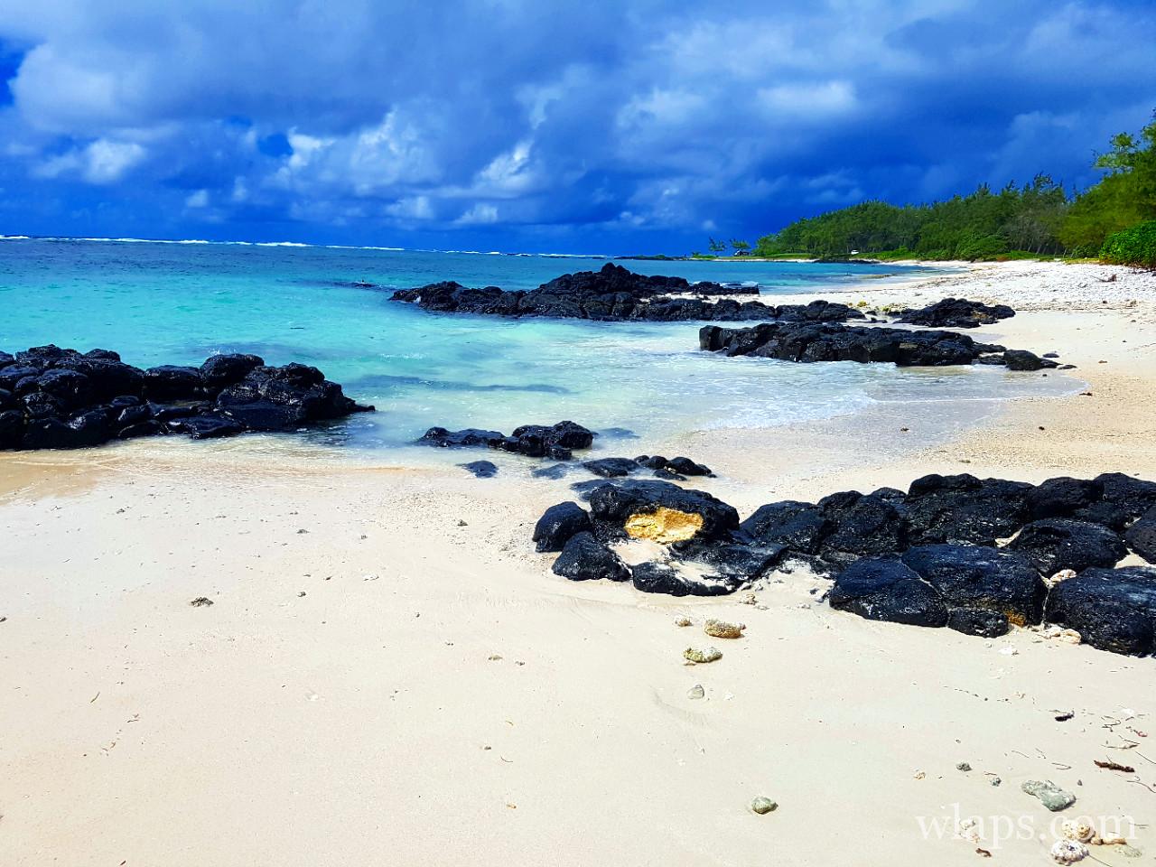 Si on reprend la voiture et qu’on roule quelques minutes en « longeant » les constructions qui longent la mer on arrive à la suite de la plage de Palmar. Quelques filaos offrent une ombre bienfaitrice et des gros rochers noirs rendent le coin ultra photogénique. Mais ce bout de plage est en bord de route et on a vue sur le grand mur sur la droite de Villa Palmar Bay. Pas top.