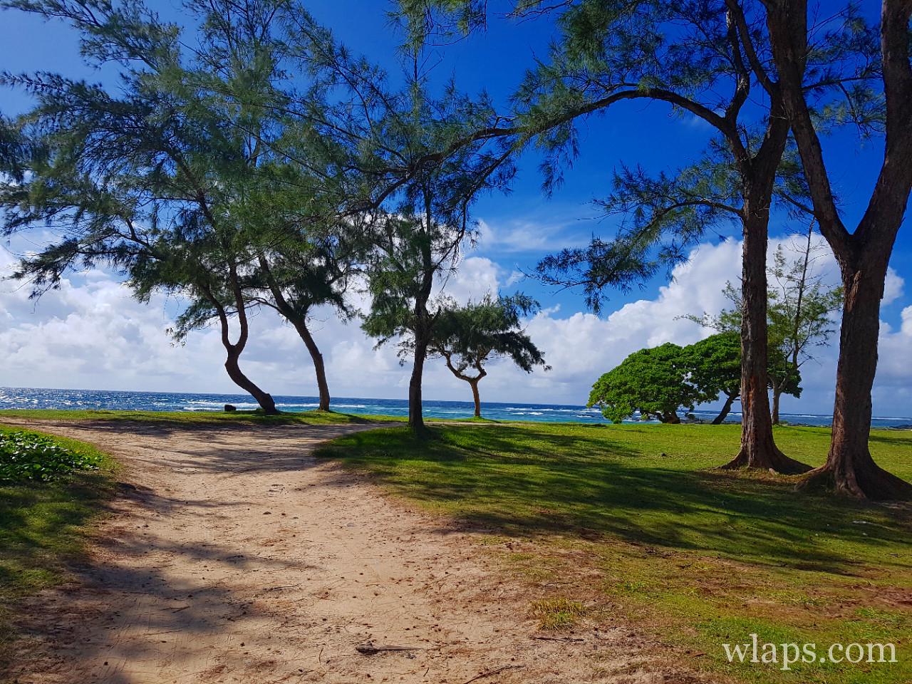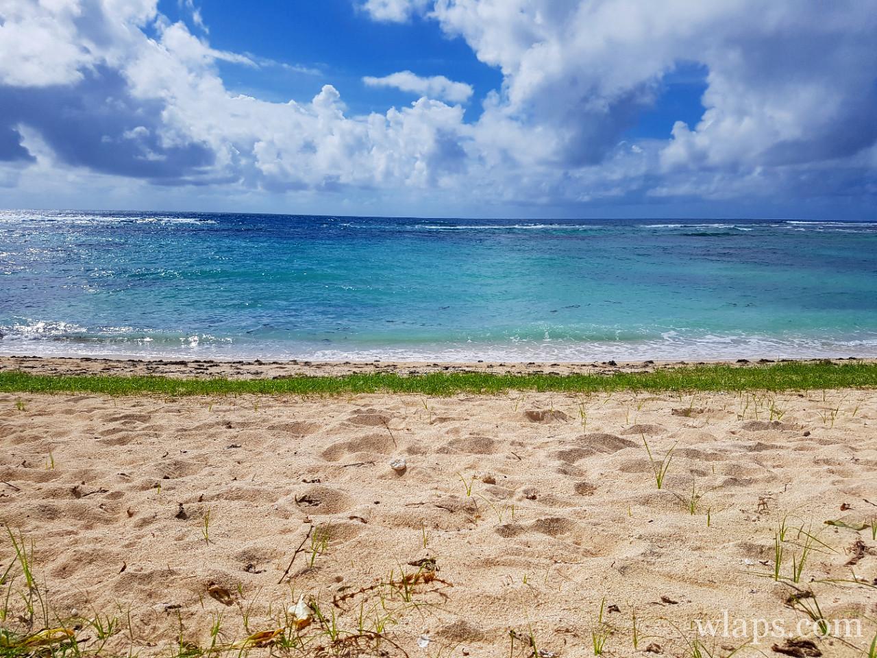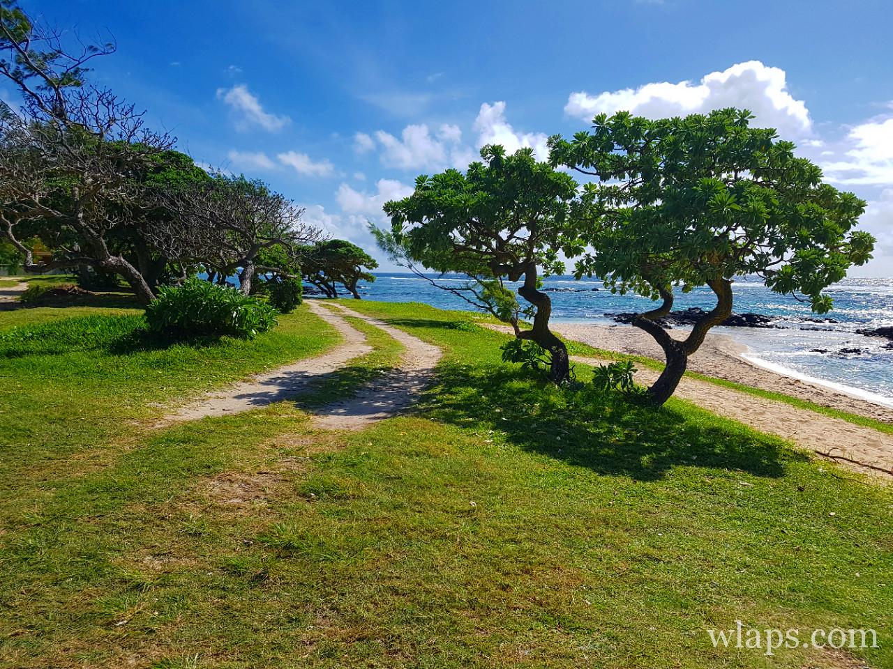 ASTUCE : Si on ne veut pas longer la résidence en passant par la plage et de ce fait auparavant avoir galéré pour se garer, je vous explique. Depuis votre voiture de location, longez les résidences Fantasea, Badamiers et Villa Palmar Bay. Roulez au pas, et dès que vous aurez passé la dernière construction de cet ensemble résidentiel, sur votre gauche se trouve un petit parking. Rentrez 100m plus loin sur la gauche sur la piste et rejoignez ce parking enherbé mais entretenu.