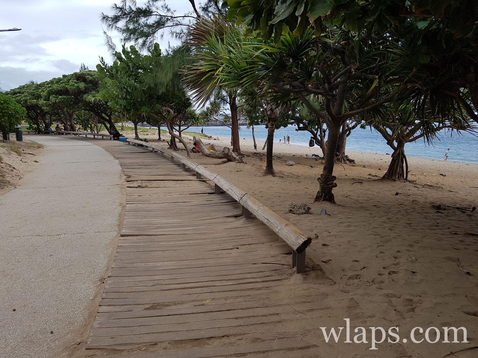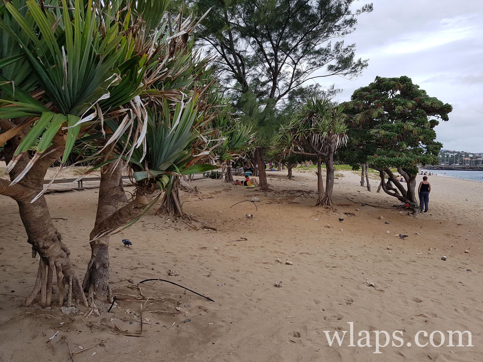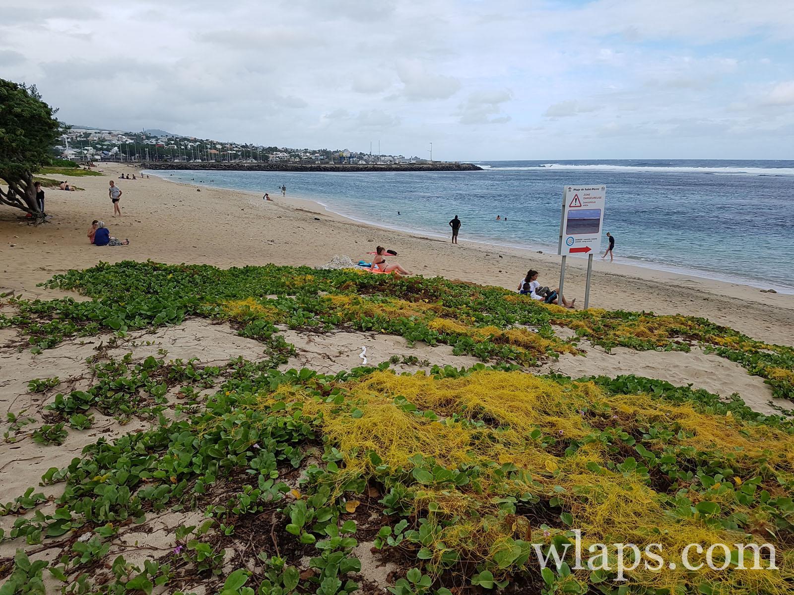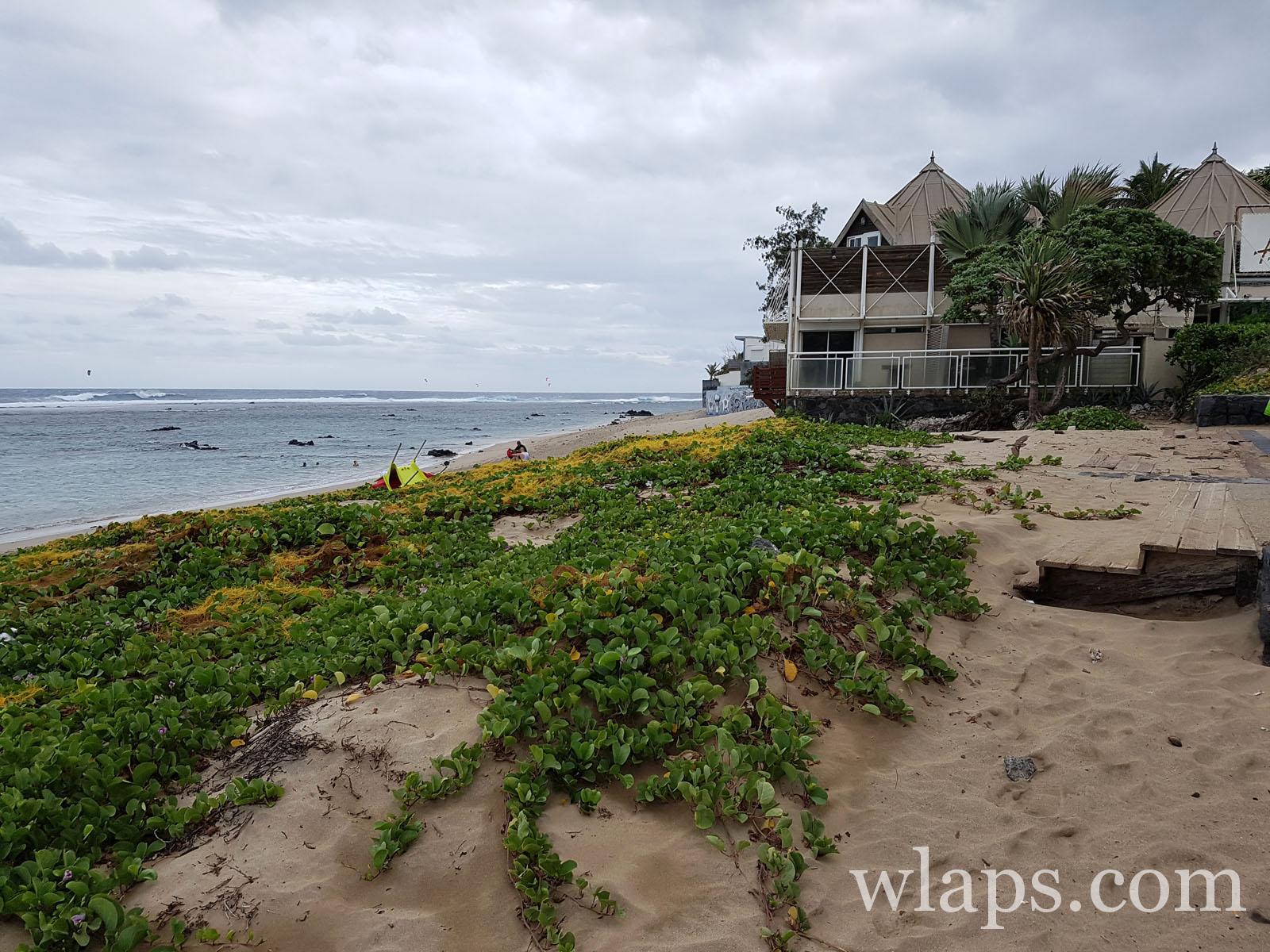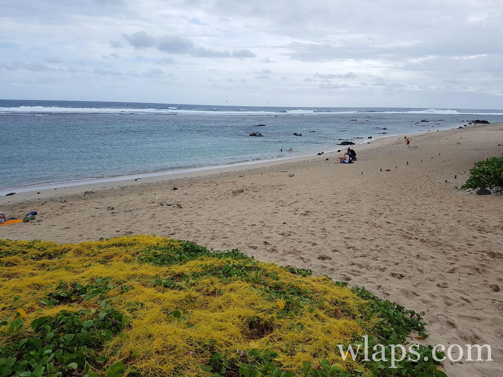 La plage est vaste, longue et s’étire aussi loin que mon regard peut porter. Au sol se trouve une végétation rase qui tire du jaune au vert. Des vacoas bordent la plage et offrent un peu d’ombre bienvenue. Ici l’ambiance est paisible et on a plaisir à farnienter face à l’Océan Indien. En revanche il y a pas mal de vent, selon les jours.