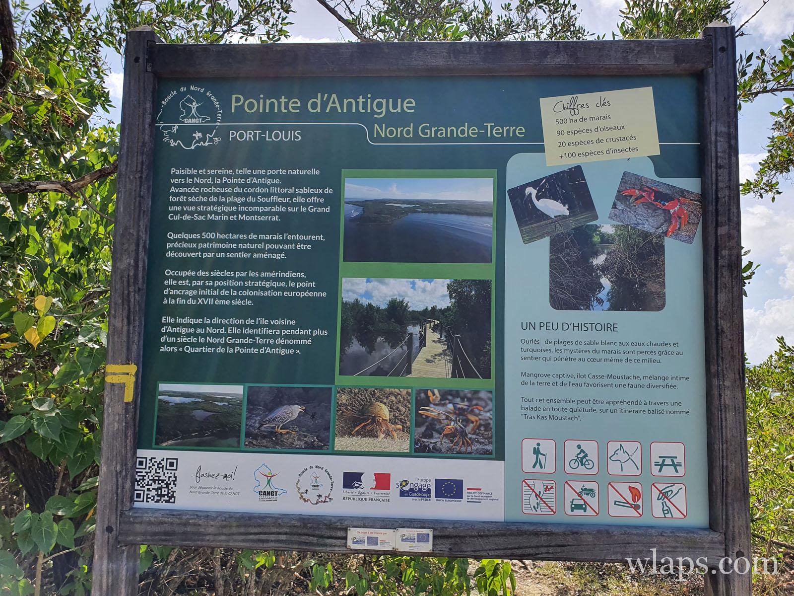 La Pointe d’Antigue ou Pwent Antig est une pointe qui se trouve tout proche du bourg de Port-Louis, dans le nord de Grande-Terre. Cette pointe méconnue offre un fantastique point de vue sur la mer mais également la végétation alentours. Ici on est entourés par la mangrove, de la végétation sèche dense et par l’eau turquoise.
