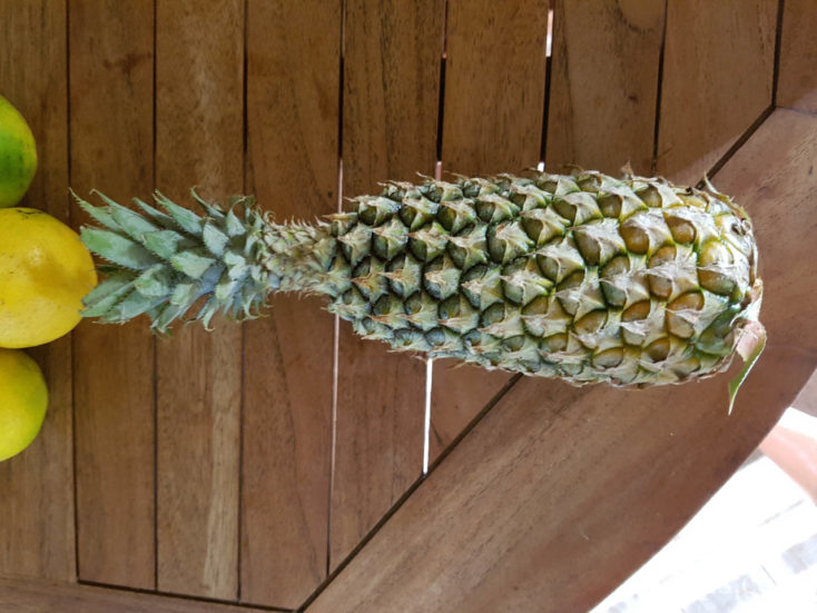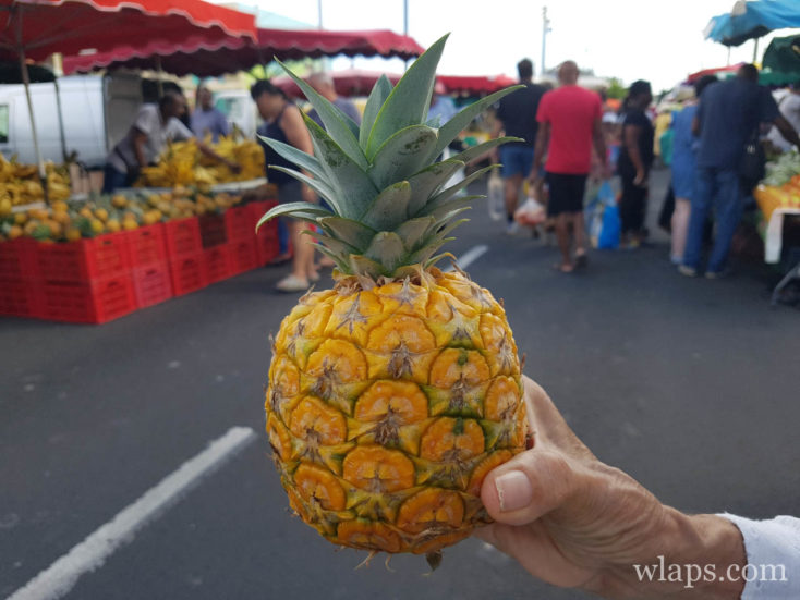 – Ananas : le fameux ananas bouteille des Antilles, gorgé de sucre et de soleil, un pur délice