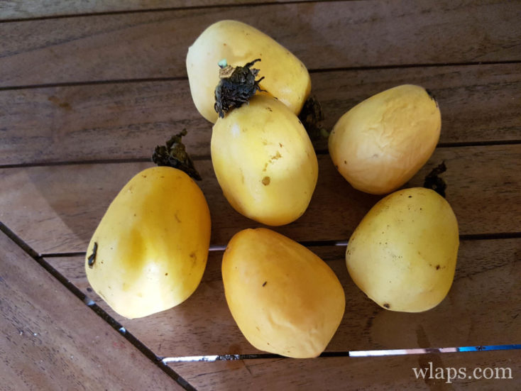 – Pomme liane (ou bien pomme d’or) : on dirait un petit fruit de la passion, orange et constitué de grains croquants. Mais il est plus doux, moins sucré et beaucoup plus difficile à trouver sur les marchés.