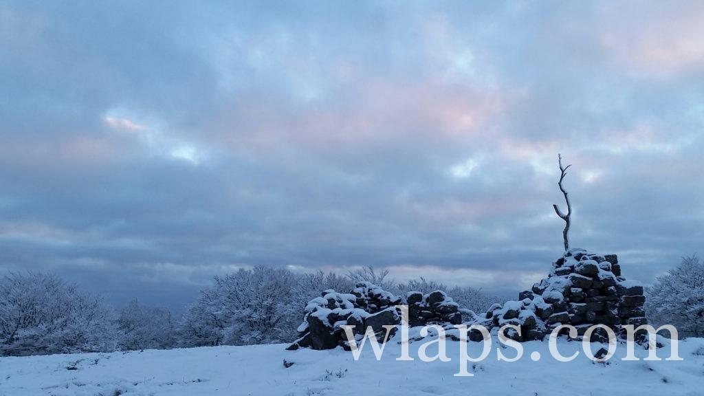 Départ : Depuis le village d’Aubrac, prendre la direction de Laguiole. Après avoir descendu les premiers virages on se retrouve à plat. Rouler encore quelques centaines de mètres et s’arrêter quand on est en face d’un grand enclos en fer et d’un grand buron en contrebas. Se garer en contrebas de la route, là où se trouve en été le parking. Puis suivre le chemin, passer le muret et monter en direction du sommet. Non balisée mais on ne peut pas se tromper. Voir sur Maps ici.