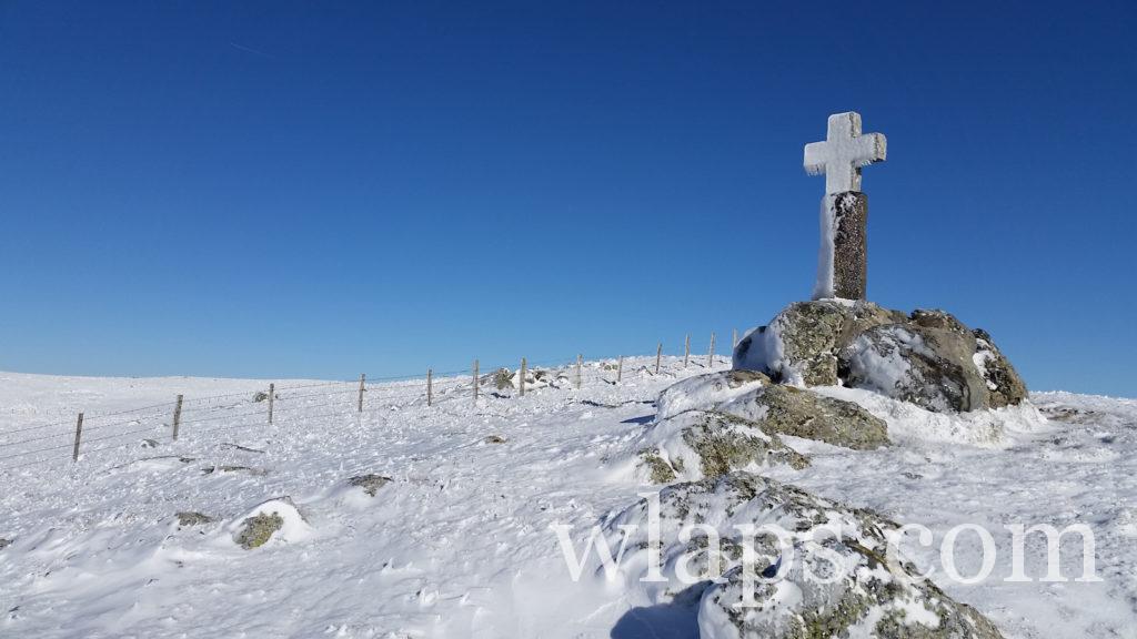 Départ : Au col d’Aubrac on peut se garer sur le petit parking au croisement. Ou bien si la route pour la station de ski est fermée car il y a trop de neige, on peut laisser sa voiture le long de la route à l’entée de cette route fermée. De là on traverse la route et la draille se trouve juste en face. La vierge se trouve au sommet que l’on aperçoit déjà. Non balisée mais très facile à faire. Voir sur Maps ici.